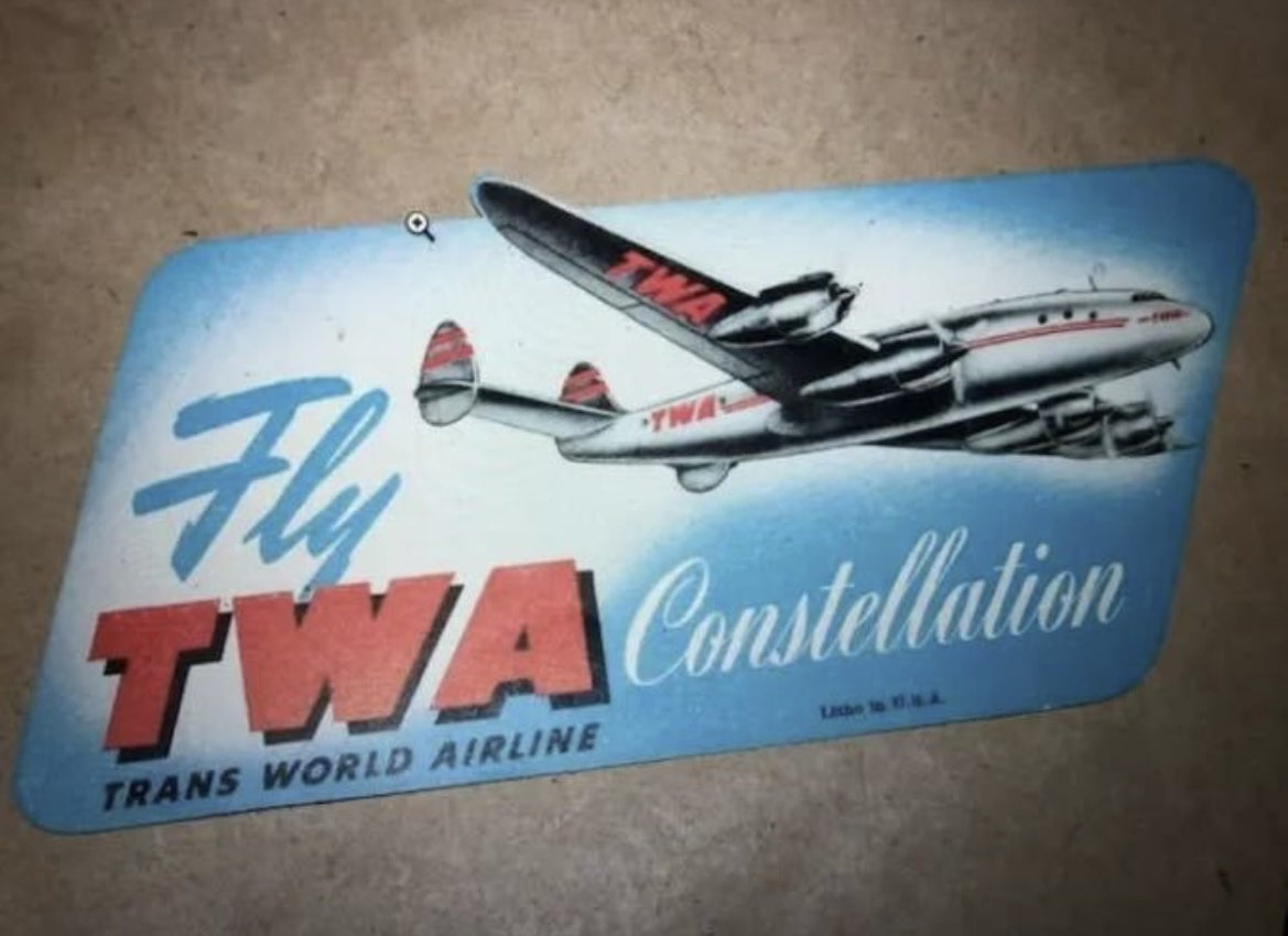Included: Early-era stickers and travel labels (TWA, hotels, and others)