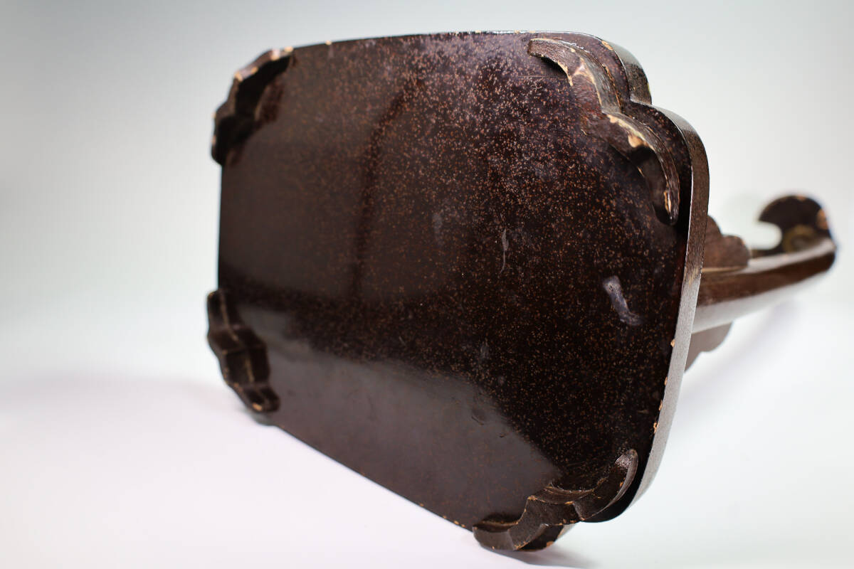 Age wear, rubbing, and lacquer thinning are consistent with long use and careful handling, reinforcing the stand’s authenticity as a period decorative implement rather than a modern imitation.