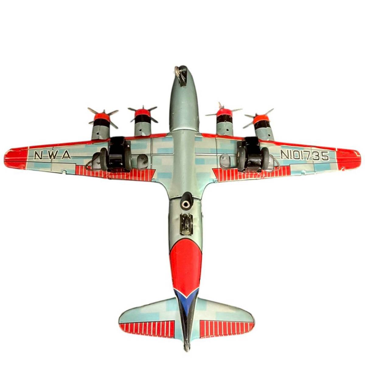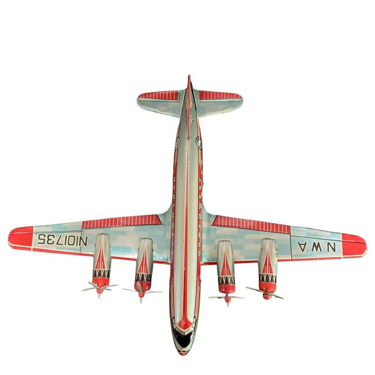 Northwest Orient Airlines was one of the most important carriers linking Japan ↔ United States during the post-war period. Using NWA livery on a Japanese toy airplane is culturally significant: it symbolizes global reconnection, modernity, and the romance of long-haul flight at a time when commercial aviation still felt futuristic. For collectors, NWA-branded tin aircraft sit at the intersection of Japanese toy history and international aviation history.