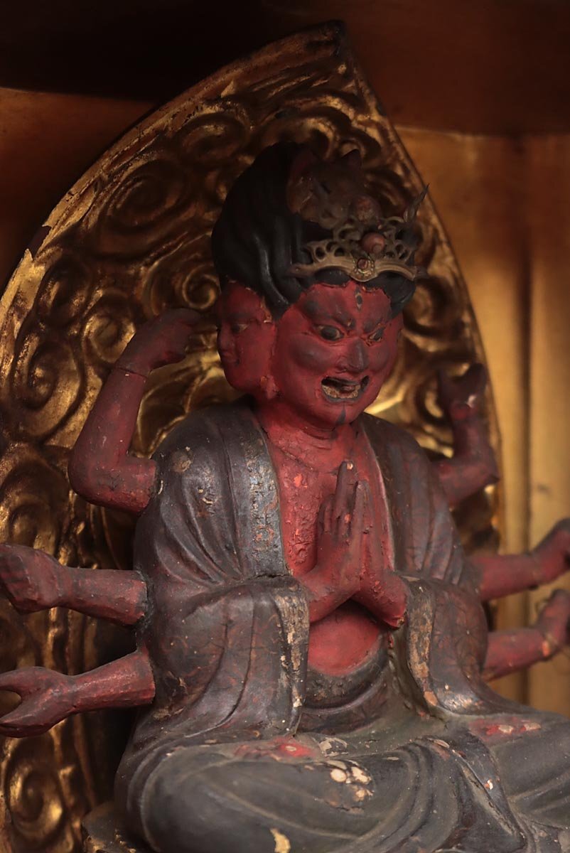 Wrathful Kannon forms are markedly rarer than serene devotional types, particularly in complete zushi ensembles. This piece holds strong appeal for collectors of esoteric Buddhist iconography, Shugendo‑related imagery, and Edo‑period domestic religious art.
