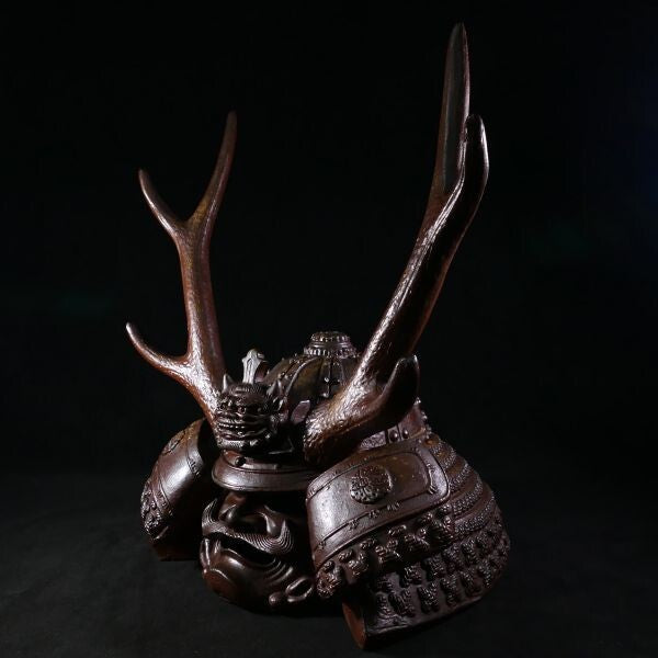 Bizen Ware Kabuto Helmet Okimono (Approx. 47 cm) | Samurai Helmet Sculpture | Japanese Ceramic Display Art Object