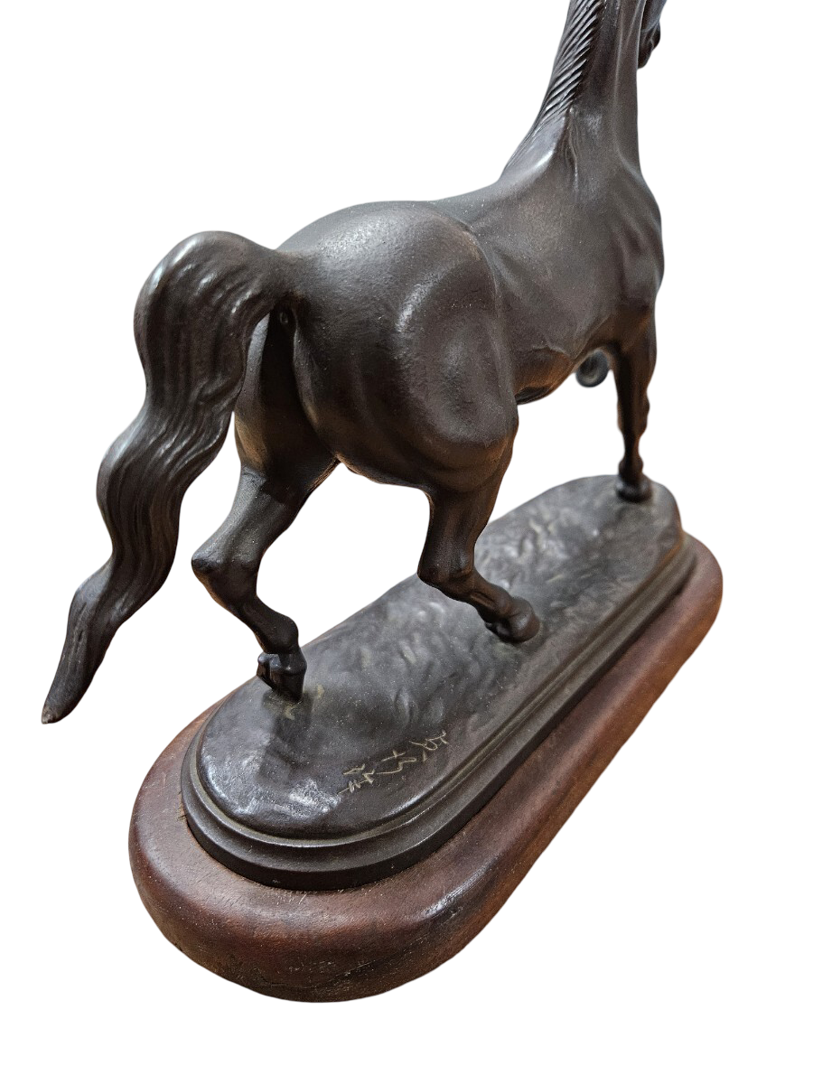 Signed Bronze Horse Sculpture on Wooden Base — Japan, Late Meiji–Taisho Period