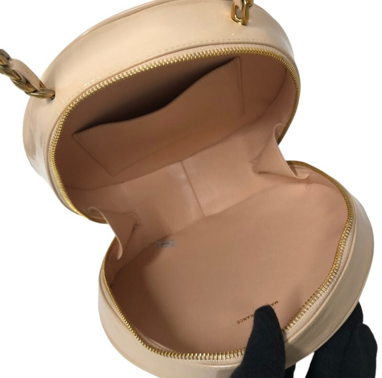 CHANEL Round Enamel Vanity Bag – Beige × Black – Gold Hardware – Rare Archive Collectible