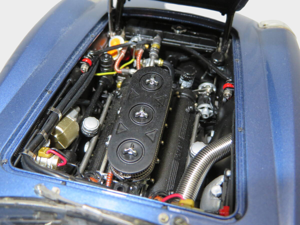 The “M.Blue” finish is especially potent for this subject because it turns the bodywork into a light instrument. Every curve becomes legible; every chrome edge becomes a boundary line; the car starts behaving like industrial sculpture. In the photos, this example presents cleanly, and the presence of box and paperwork pushes it into the “kept with intent” category—exactly what serious collectors want when the price tier gets real.