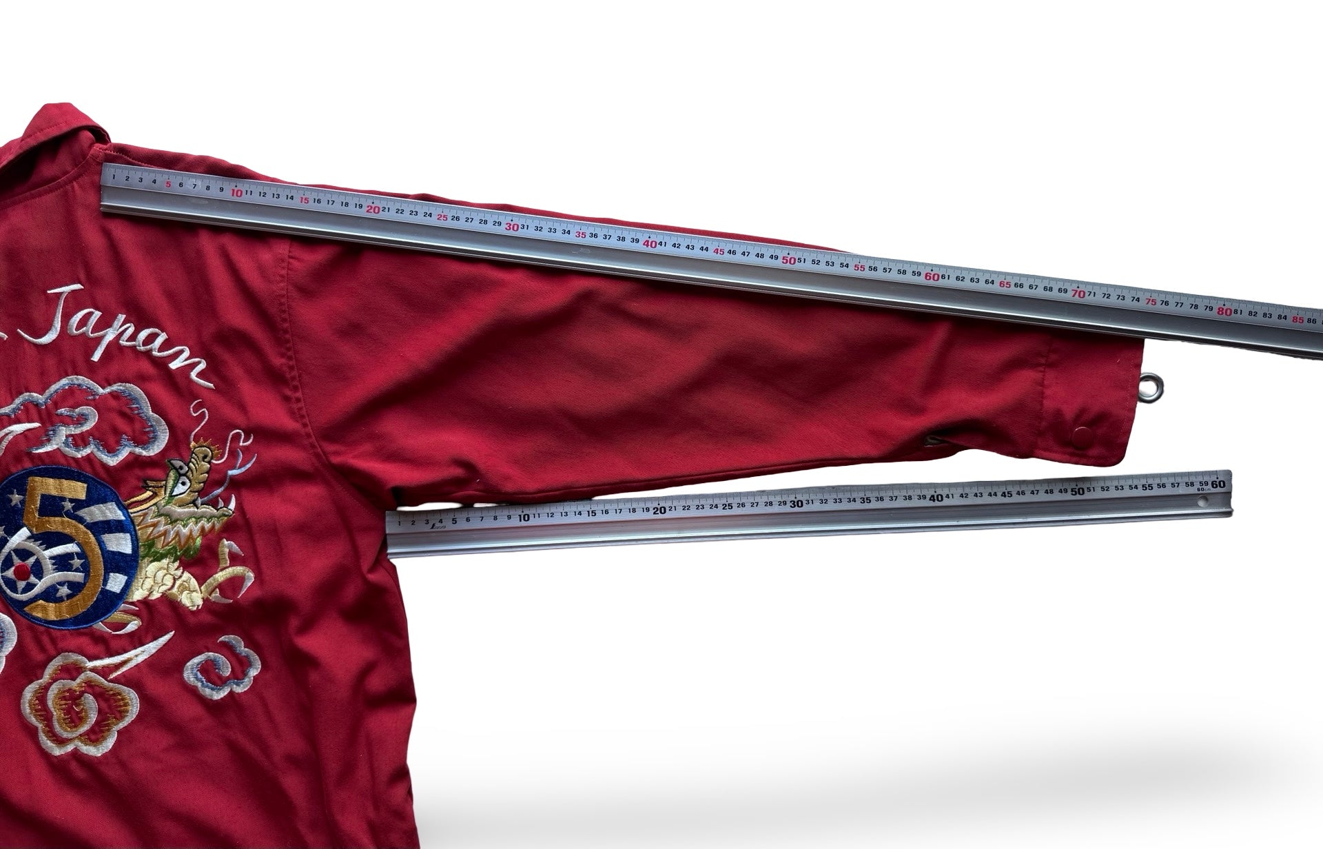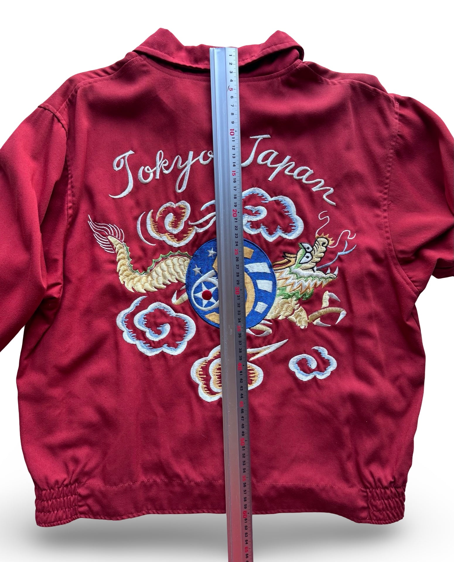 Vintage Tailor Toyo Dragon Souvenir Jacket — Tokyo Japan Embroidery • 5th Air Force Patch • Scarlet Red Sukajan (One-Side Only)