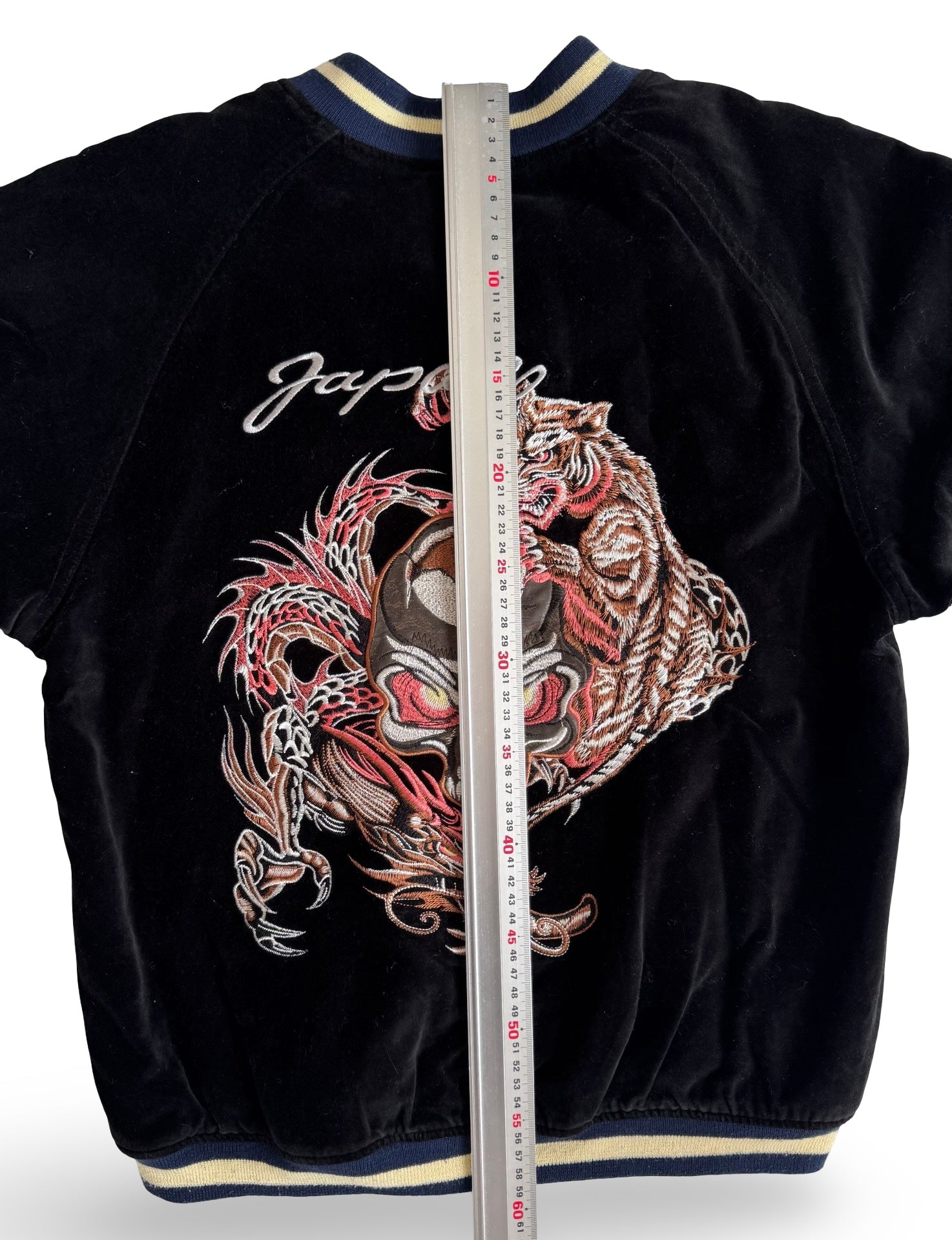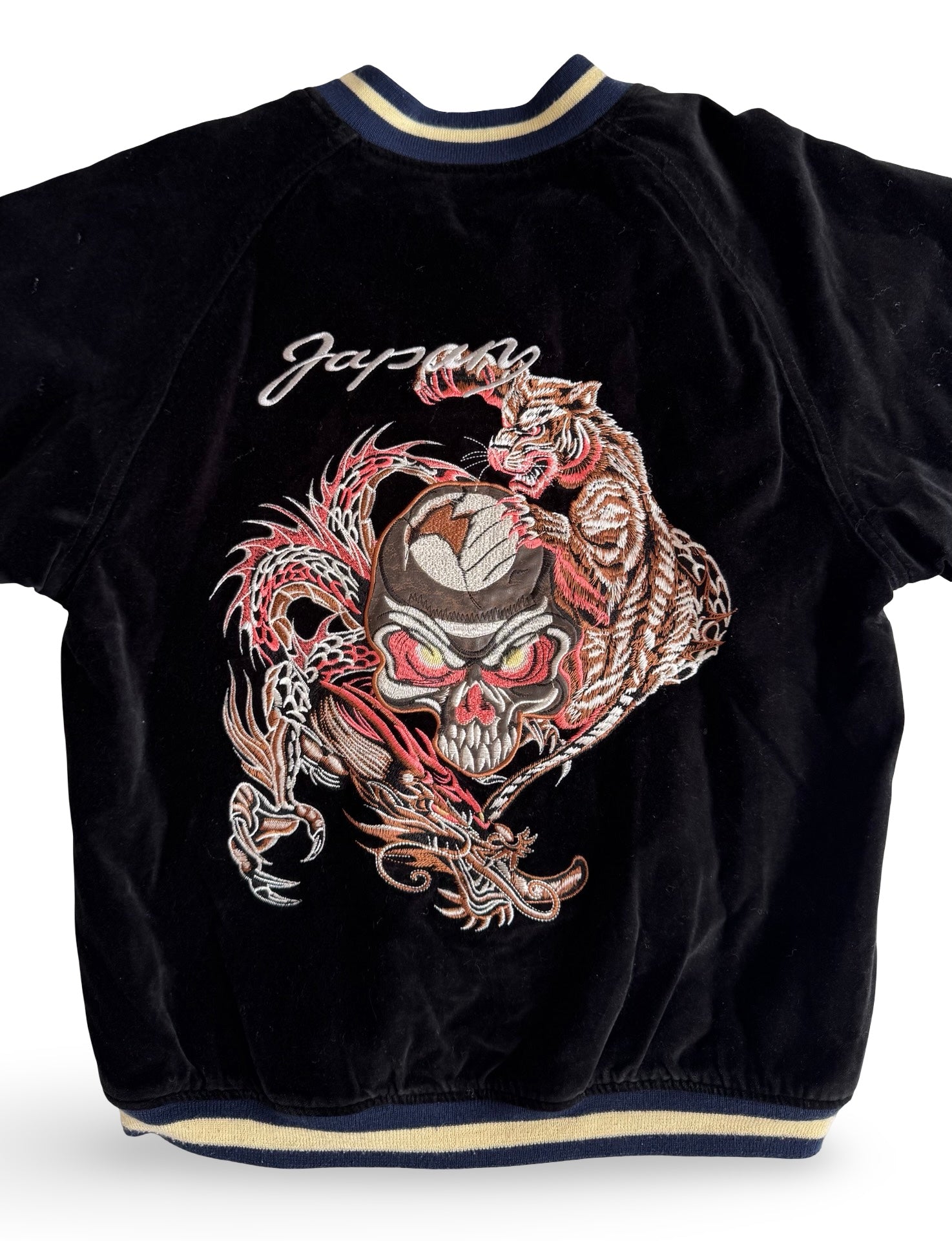Vintage Velvet Sukajan Jacket — Tiger × Skull Embroidery, Japan Yokosuka Style Velour Souvenir Jacket