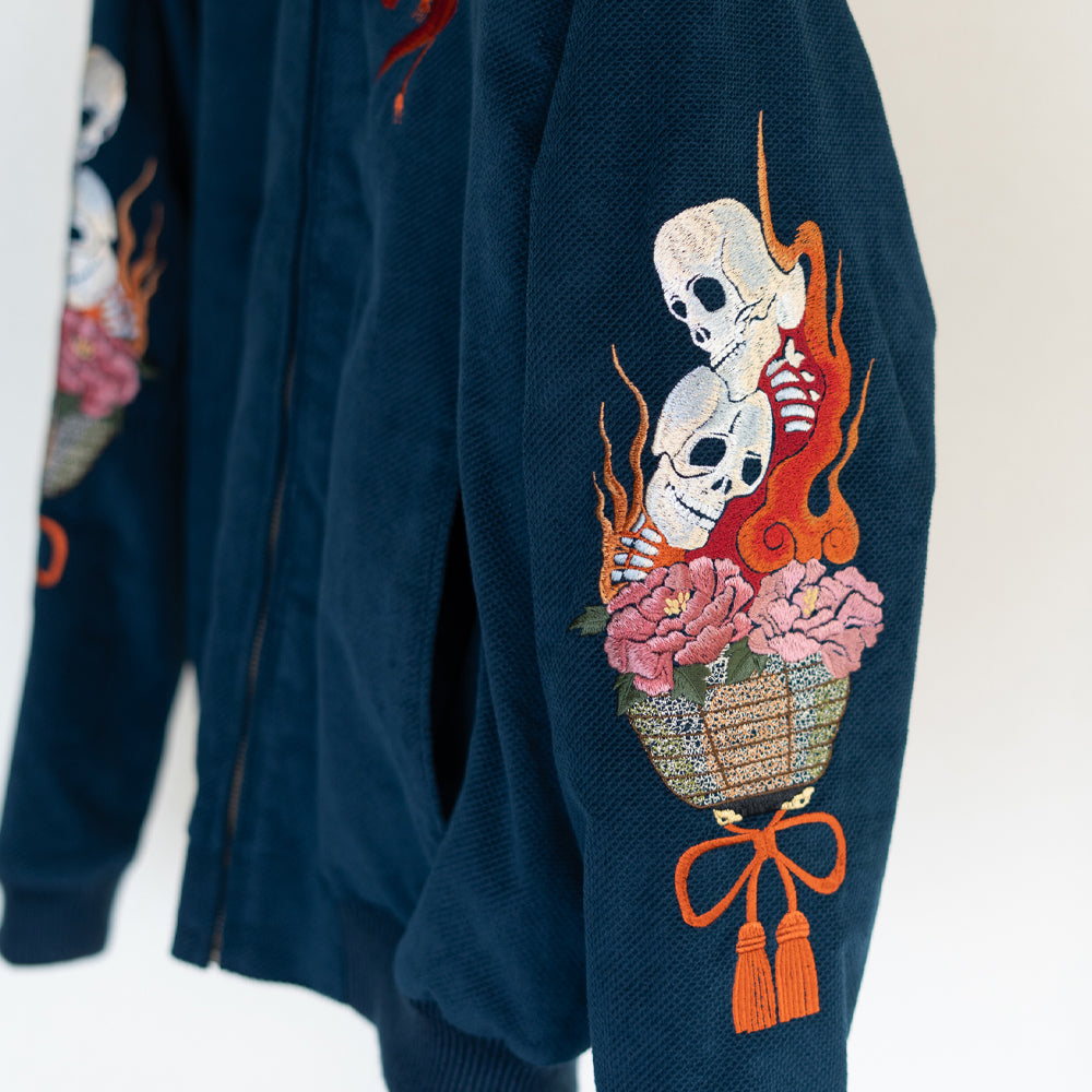 Each jacket exhibits slight embroidery variation due to hand-guided production, reinforcing its artisan character.