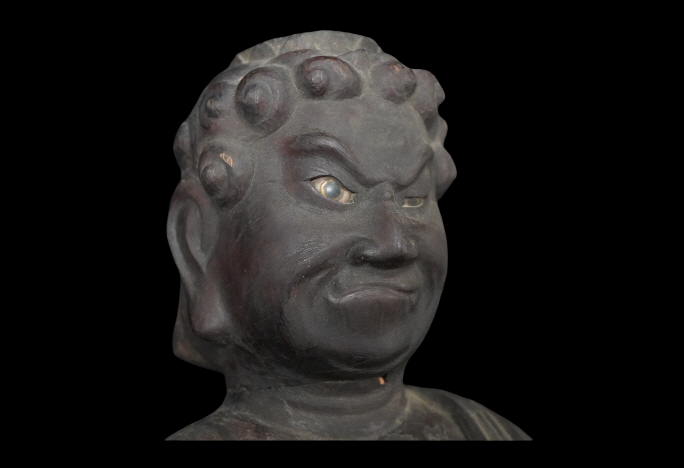 Fudo Myoo is central to esoteric Buddhism, revered as a protector who cuts through ignorance and safeguards the Buddhist law. Sculptures of this type were placed in temple halls and ritual spaces rather than domestic altars.