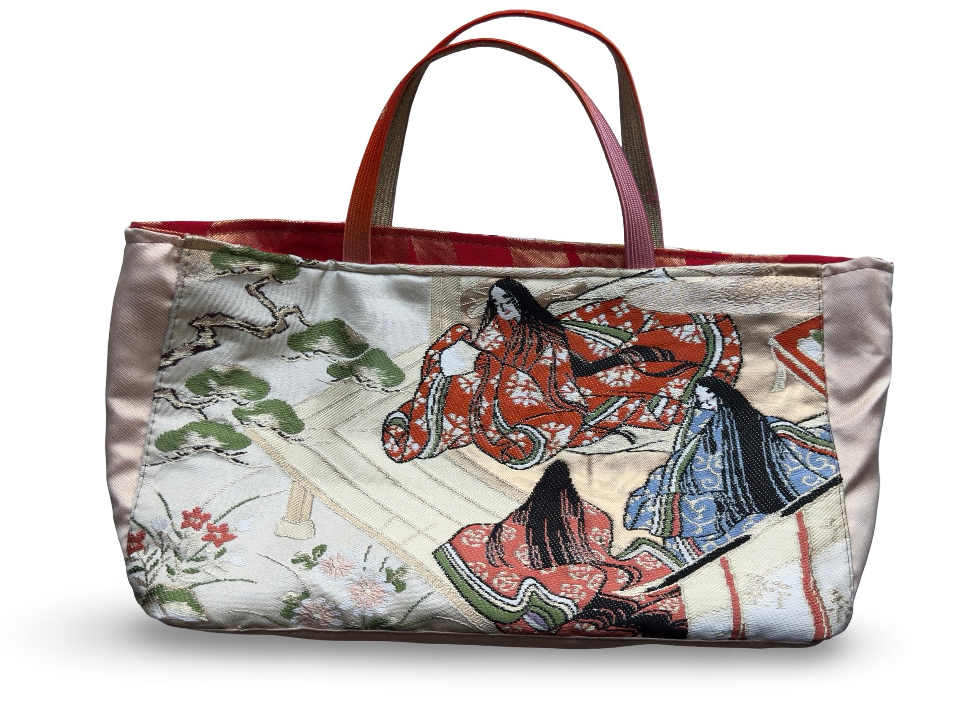 Remake Wagara Heian Court Tote Bag — Genji Monogatari Obi Fabric | Japanese Kimono Tapestry Art Handbag