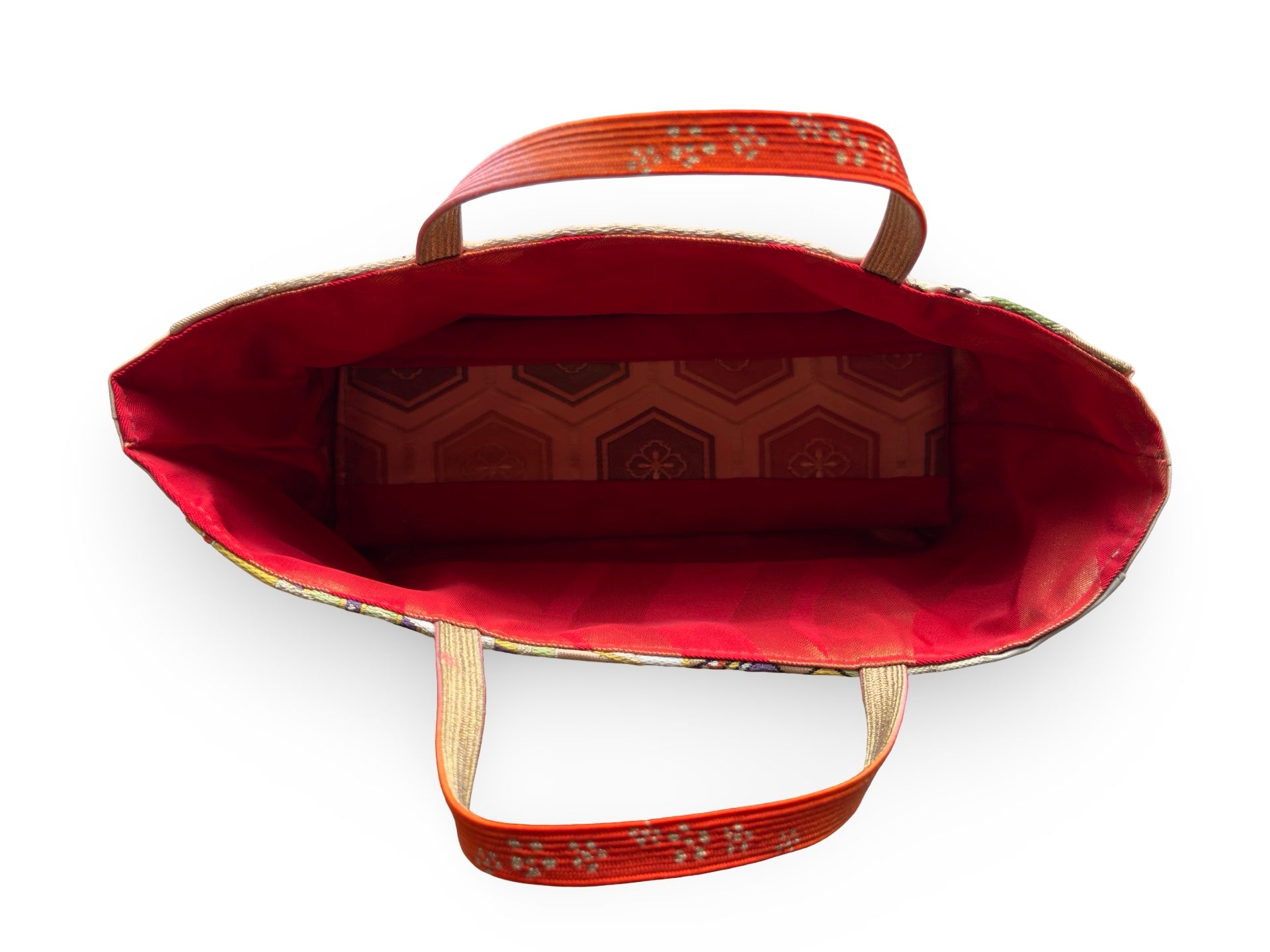 Sized for daily use yet striking enough for formal occasions, this tote fits books, tablets, makeup pouches, and essentials. The handles are reinforced for durability, and the bag remains lightweight despite the density of its woven brocade. It’s perfect for museum visits, cultural events, kimono styling, or as a luxury everyday accessory.