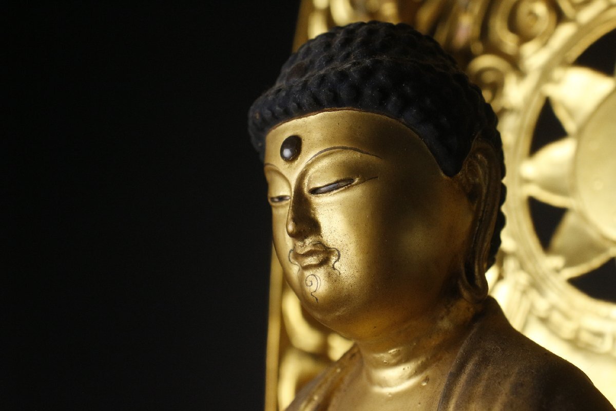 Gyokugan (inlaid eyes) is a crucial collector signal. Unlike painted eyes that can read flat at distance, inlaid eyes catch ambient light differently as you move, producing a living depth to the gaze. In Buddhist sculpture, that presence is not about realism for its own sake; it is about relationship. The figure feels like a calm witness—an effect many collectors seek when they describe a work as having “presence” or “spiritual gravity.”