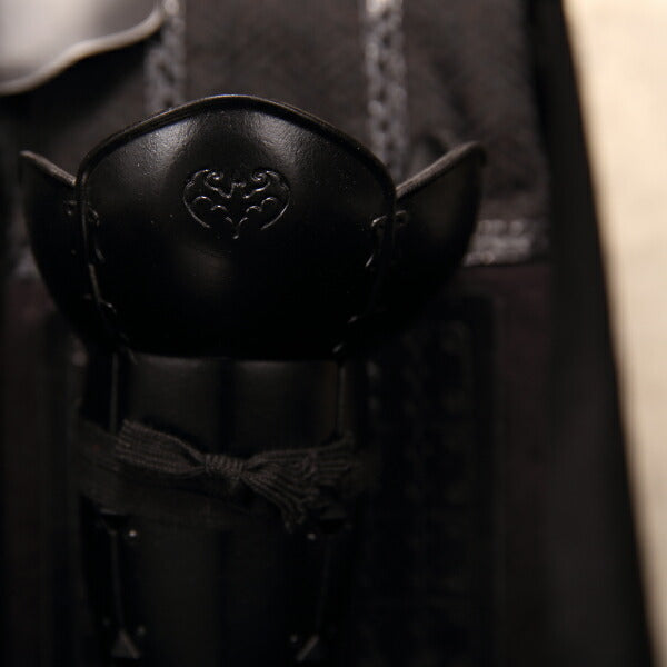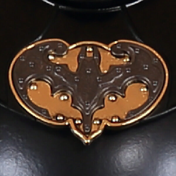 This piece sits at the collision point between two display traditions: the disciplined theatre of samurai armor and the modern mythology of Gotham. Presented in a shrine-style cabinet format associated with Gogatsu ningyo, the figure reads as a ceremonial presence—helmeted, armored, and composed—while the iconography signals a contemporary hero archetype.