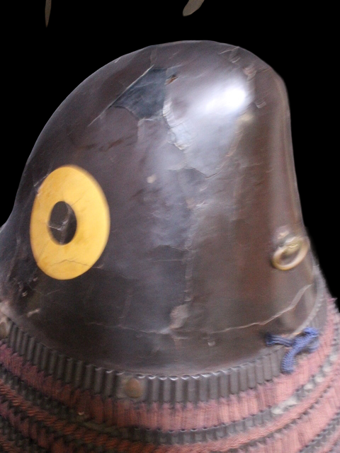 The listing notes the bowl appears constructed from multiple small plates, aligning with pragmatic late medieval engineering. Whether the final dating resolves to late Sengoku or early Edo by in-hand study, the helmet’s vocabulary belongs to that transitional world—where protection, status, and household identity converged into a single object and were later preserved as inherited regalia.
