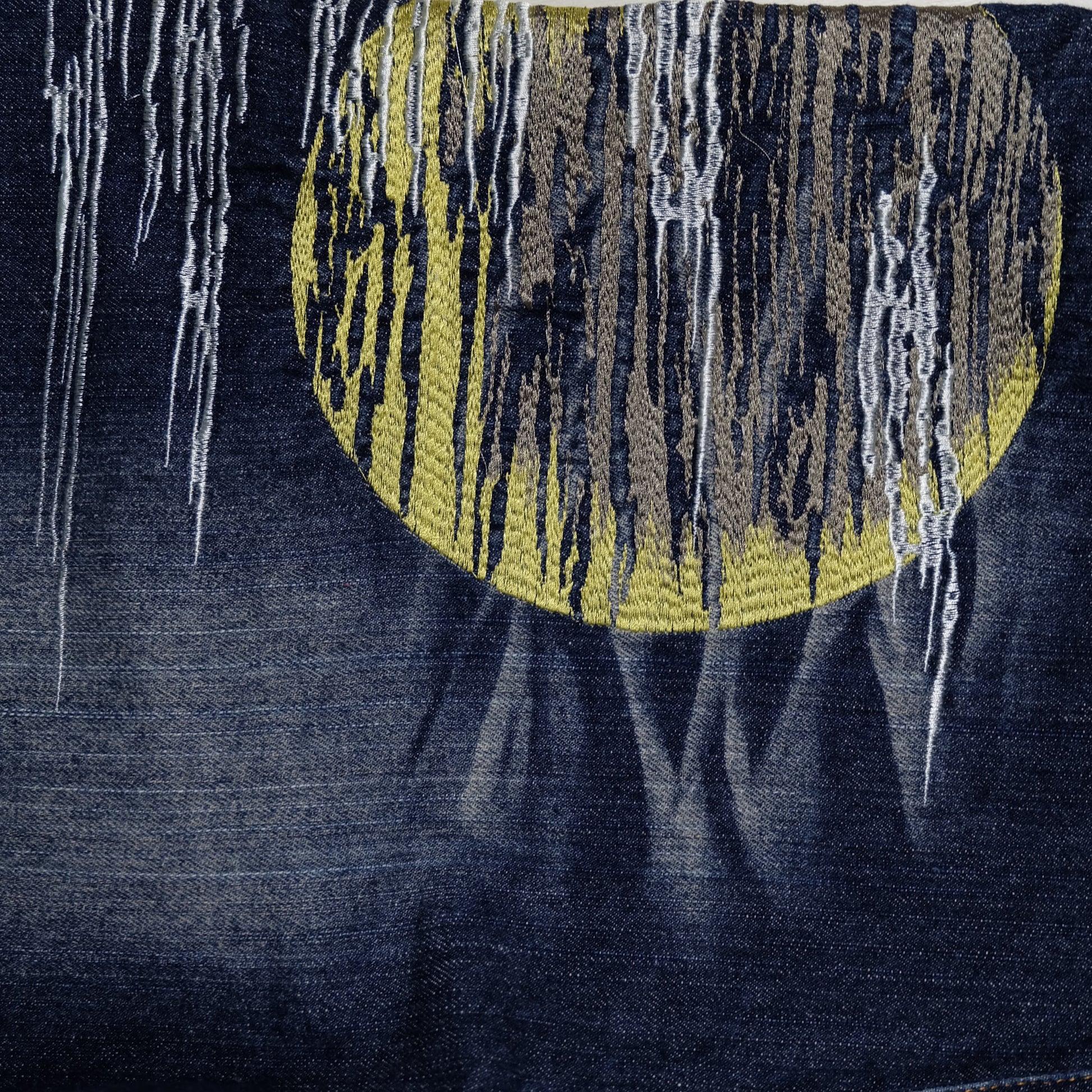 This masterpiece from Kacchō Fūgetsu celebrates the beauty of traditional Japanese aesthetics through modern denim. Named after the poetic concept “splendor, birds, wind, and moon,” the brand channels the classical elegance of Japanese nature and seasonal imagery into bold, expressive textile art.