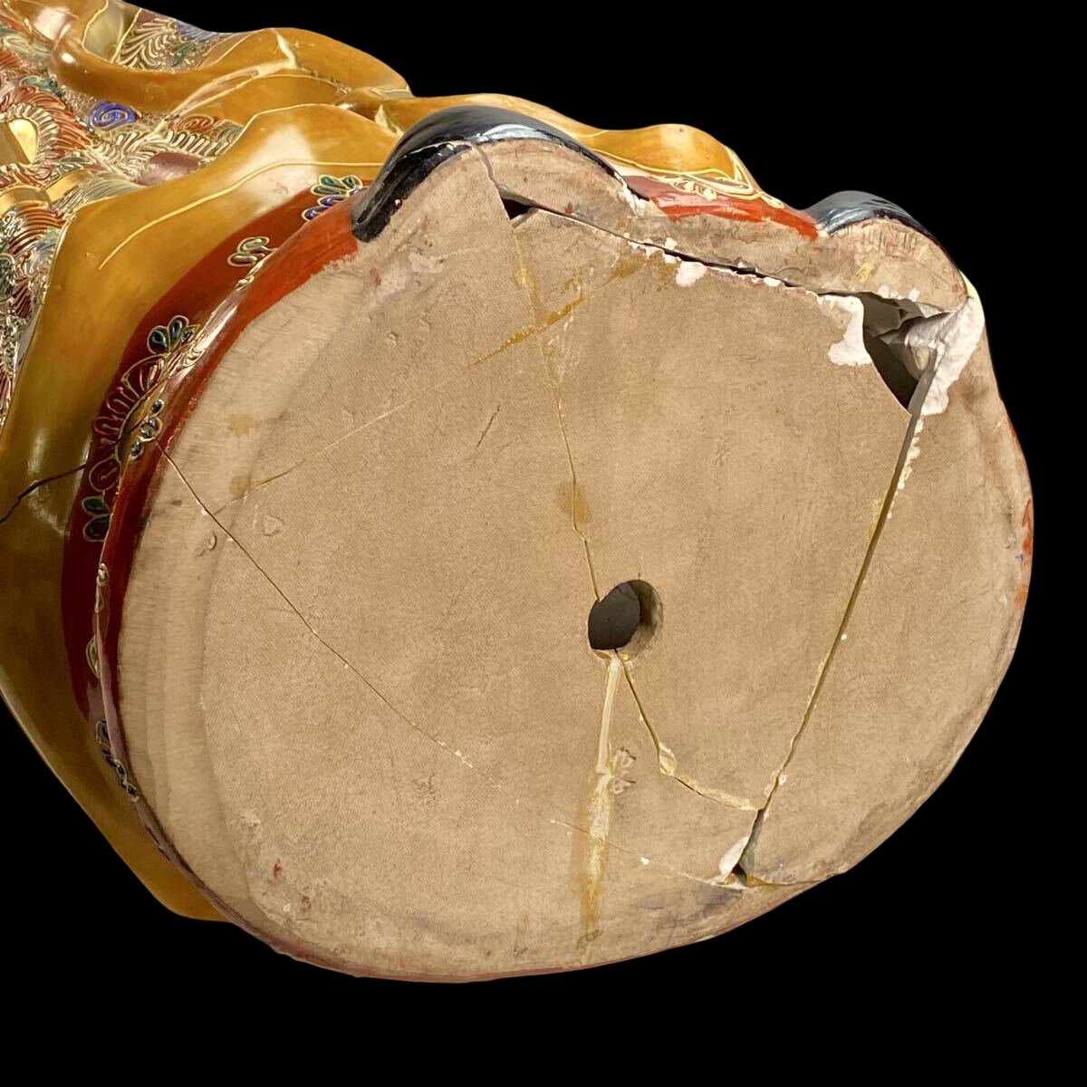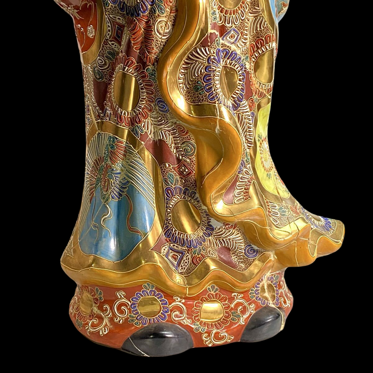 This piece is suited to collectors seeking bold visual impact—an interior-scale Japanese ceramic figure with strong color and presence.