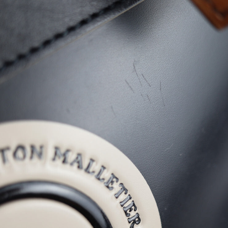 Leather exterior: Light rubbing + faint scratches consistent with responsible use