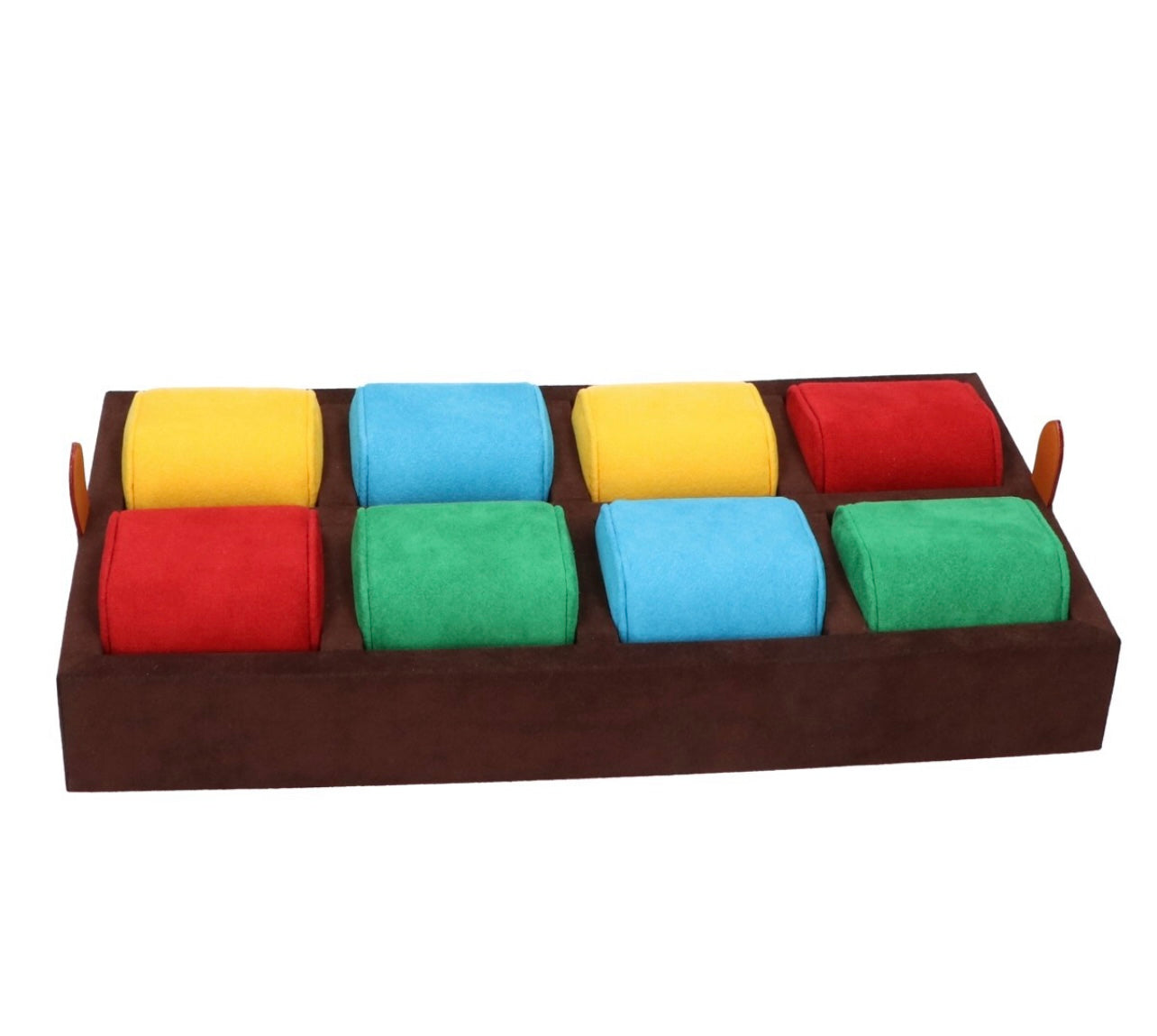 Inside, eight impeccably crafted watch compartments allow seamless organization of your prized timepieces. Each cushion features vibrant tones—yellow, blue, green, and red—creating a curated display reminiscent of fine horology boutiques. The interior is lined in deep velvety microfiber, providing a stable environment ideal for long-term storage and presentation.