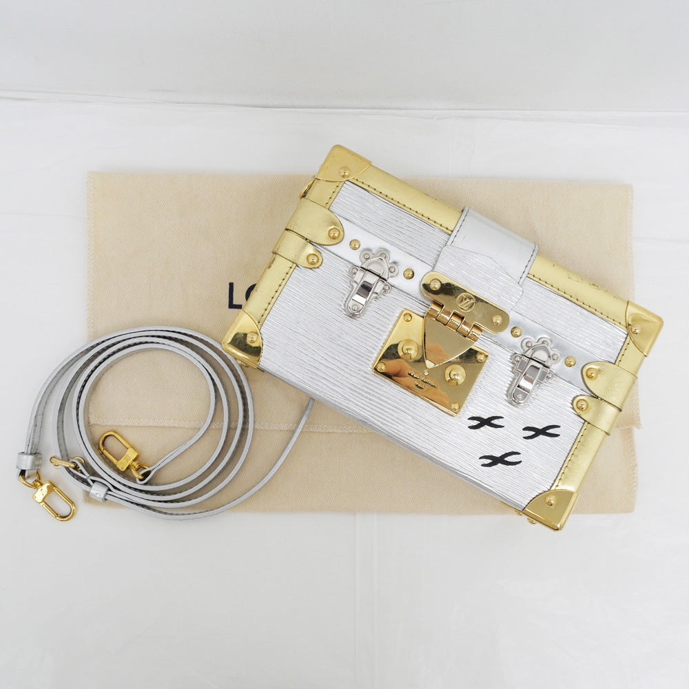 Louis Vuitton Petite Malle Shoulder Bag M54652 – Metallic Silver Épi Leather · Gold Hardware Accents · Italy-Made Mini Trunk Icon · AB Rank