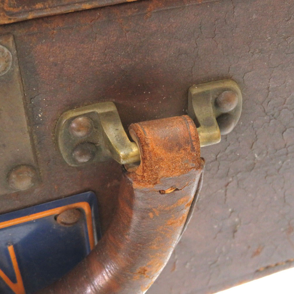 Louis Vuitton Vintage Leather Trunk 60 – Brown Leather, Travel Stickers, Heavy Patina – Antique LV Case (France)
