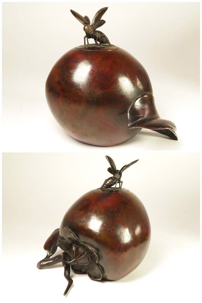 Meiji Period Japanese Bronze Persimmon & Bee Incense Burner Koro Sculptural Tea Object