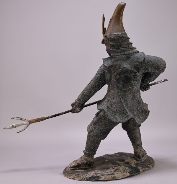 Meiji Bronze Warrior Sculpture — “Katō Kiyomasa” Theme with Naginata (58 cm)