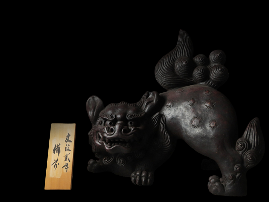 Majestic Bizen Ware Shishi Okimono — Rare Oversized Guardian Lion Sculpture, Approx. 86 cm Wide (Late-Edo Period Attribution)