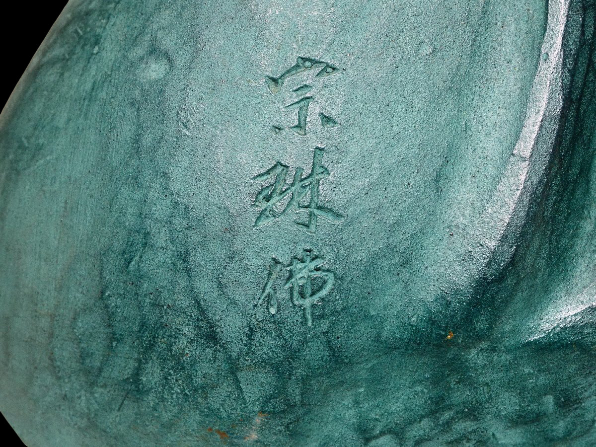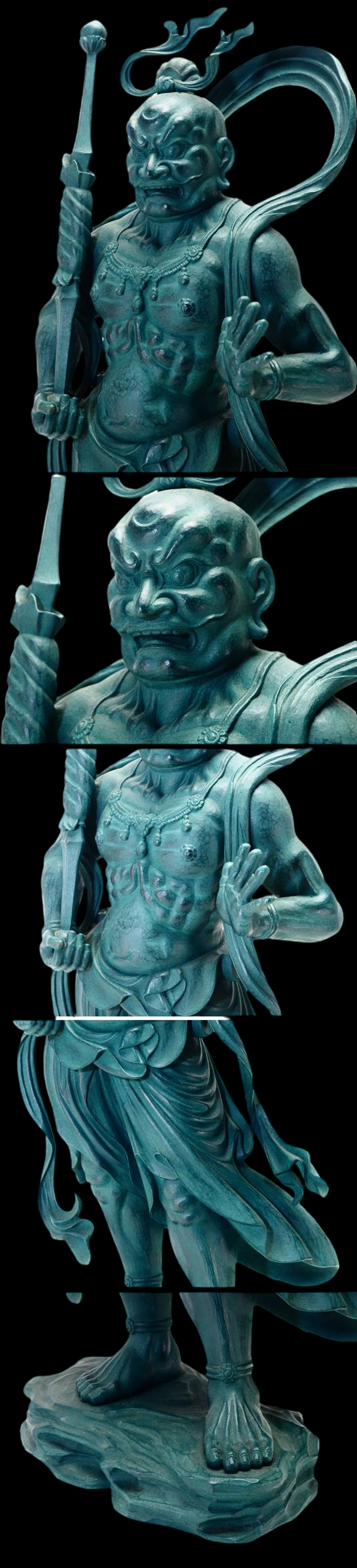 Attribution is based on stylistic analysis, seller documentation, and comparative examples from Matsuhisa Sohrin‑school bronze guardians. As with all historical devotional objects, precise workshop attribution cannot be guaranteed, but craftsmanship, scale, and finish strongly support stated origin.
