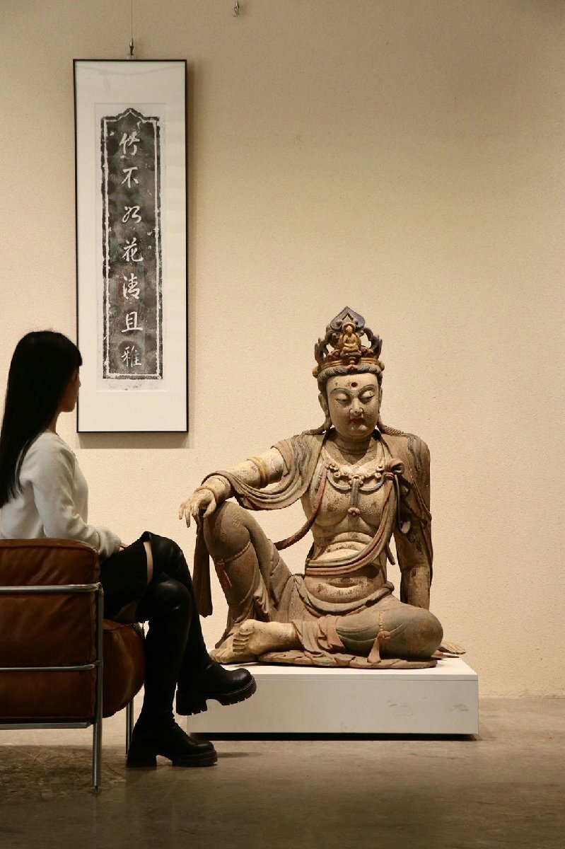 Zizai Guanyin imagery originates in Chinese Buddhist art, particularly during the Tang–Song transition and mature Song dynasty period. This form later entered Japan, where it became known as Jizai Kannon. Sculptures of this scale were typically enshrined in temple halls rather than private devotion, emphasizing public teaching presence and compassionate guardianship.