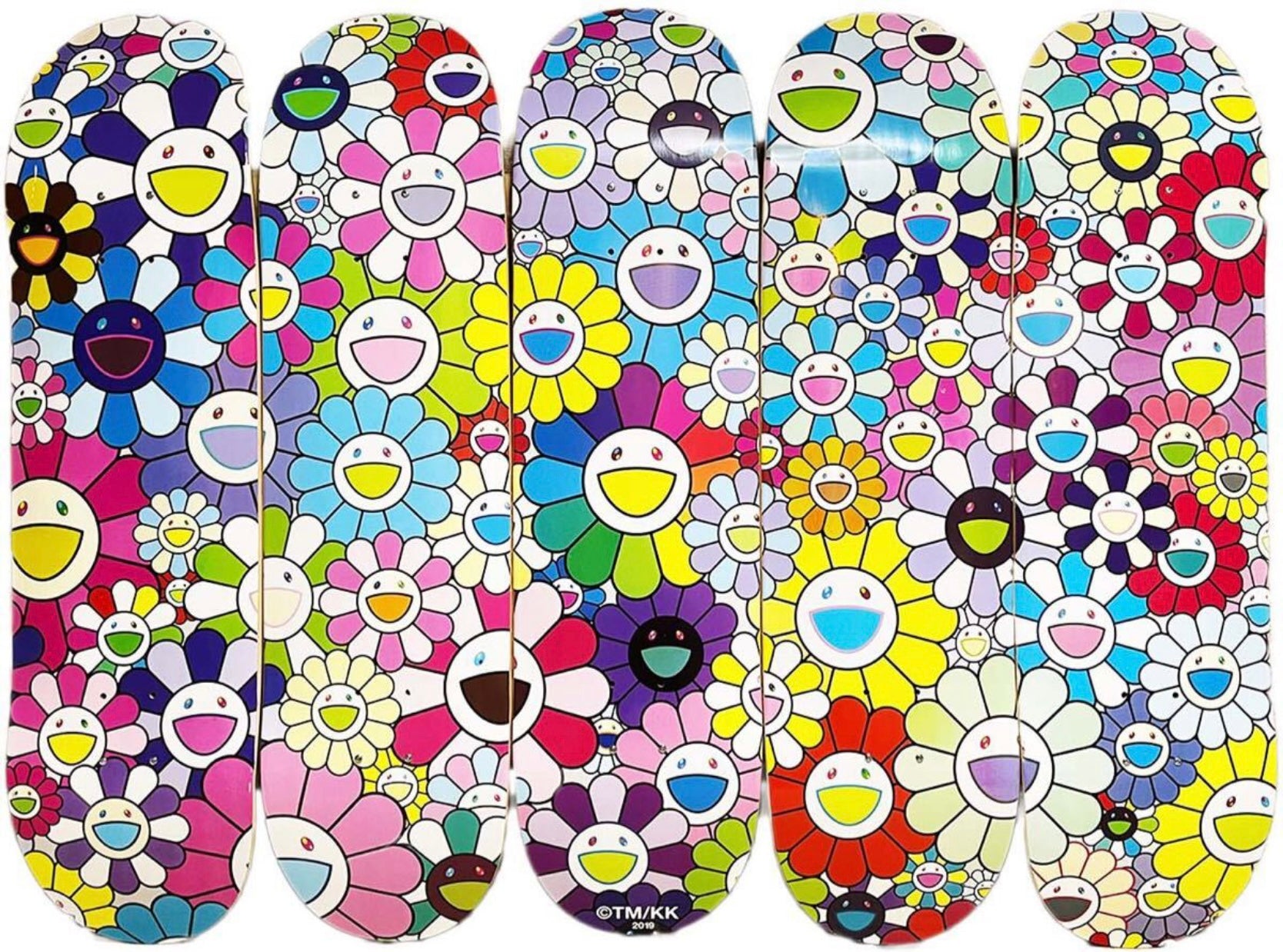 Takashi Murakami 2019 Flower Skateboard Deck Set (5pcs) Kaikai Kiki Tonari no Zingaro Superflat Rainbow Smile Limited Art Boards