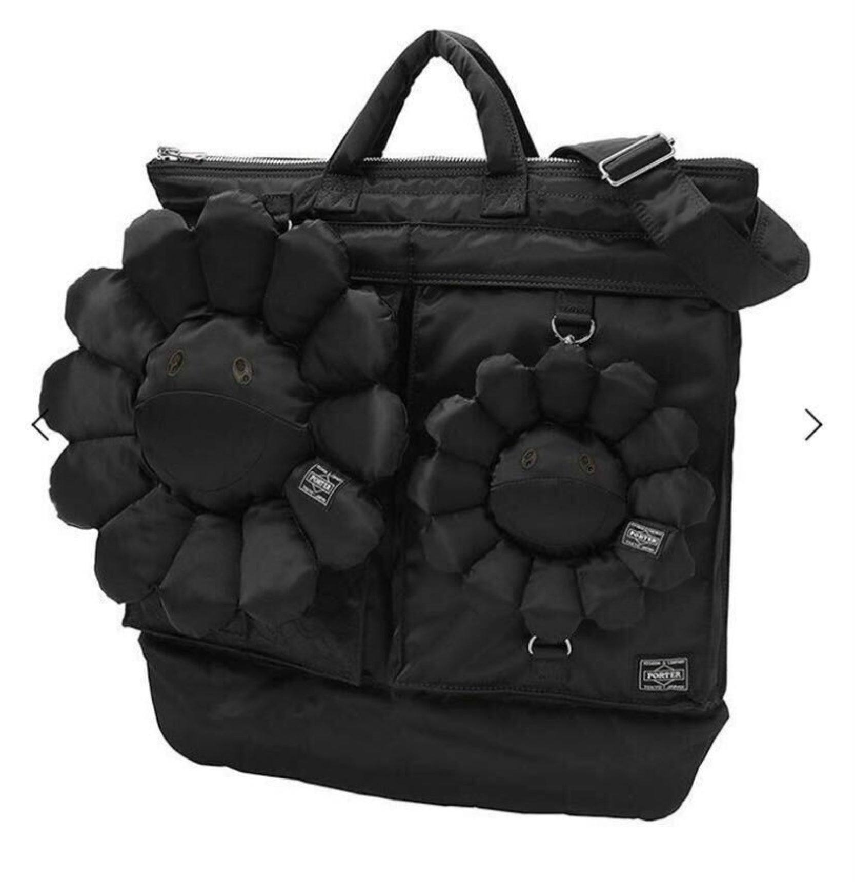 Takashi Murakami × PORTER Black Plush Flower Helmet Bag | Limited Japan Release | Collector Art Tote