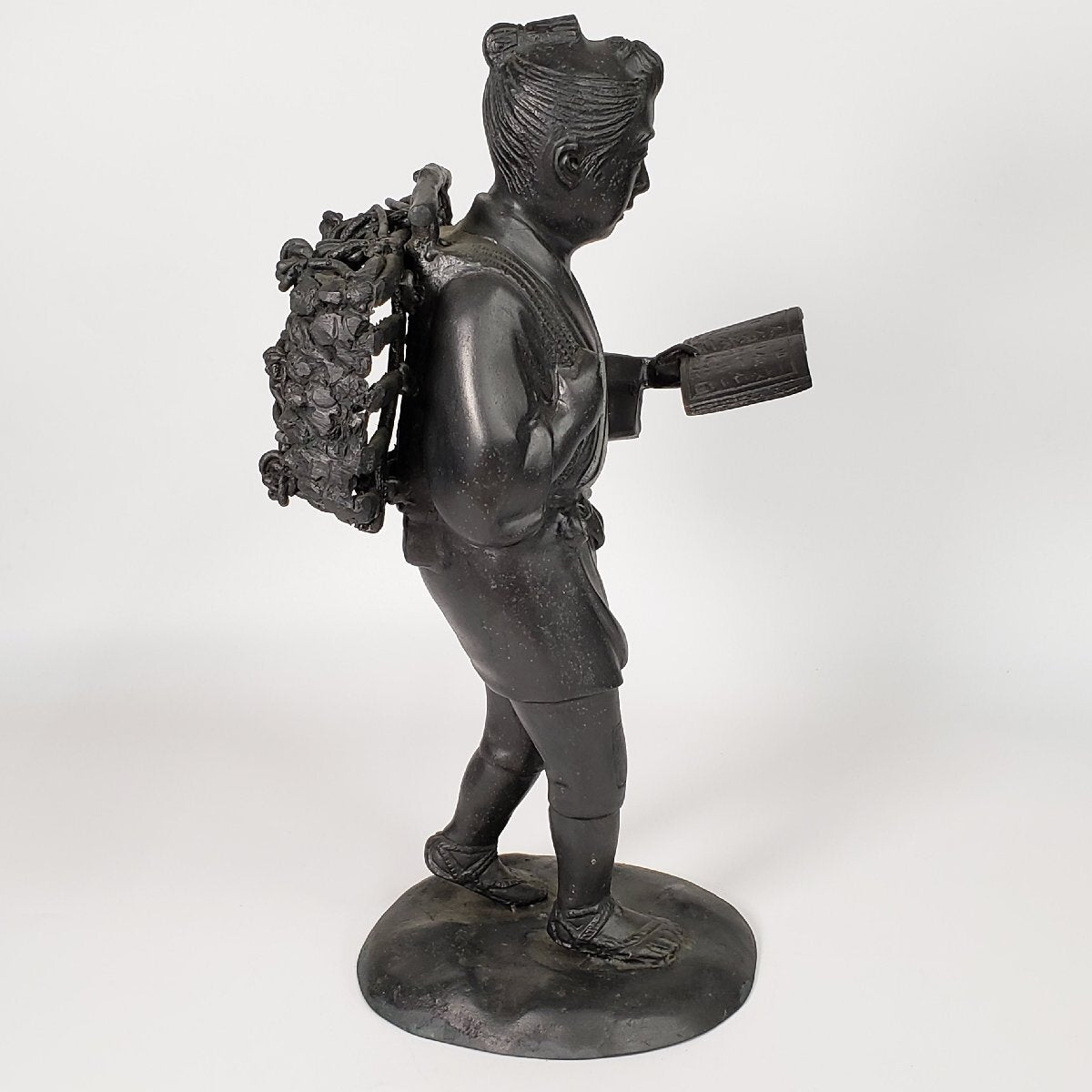 Ninomiya Kinjiro (Ninomiya Sontoku) Bronze Figure, 36.5cm — Scholar Child Reading While Walking — Cast Metal Japanese Folk Icon Sculpture