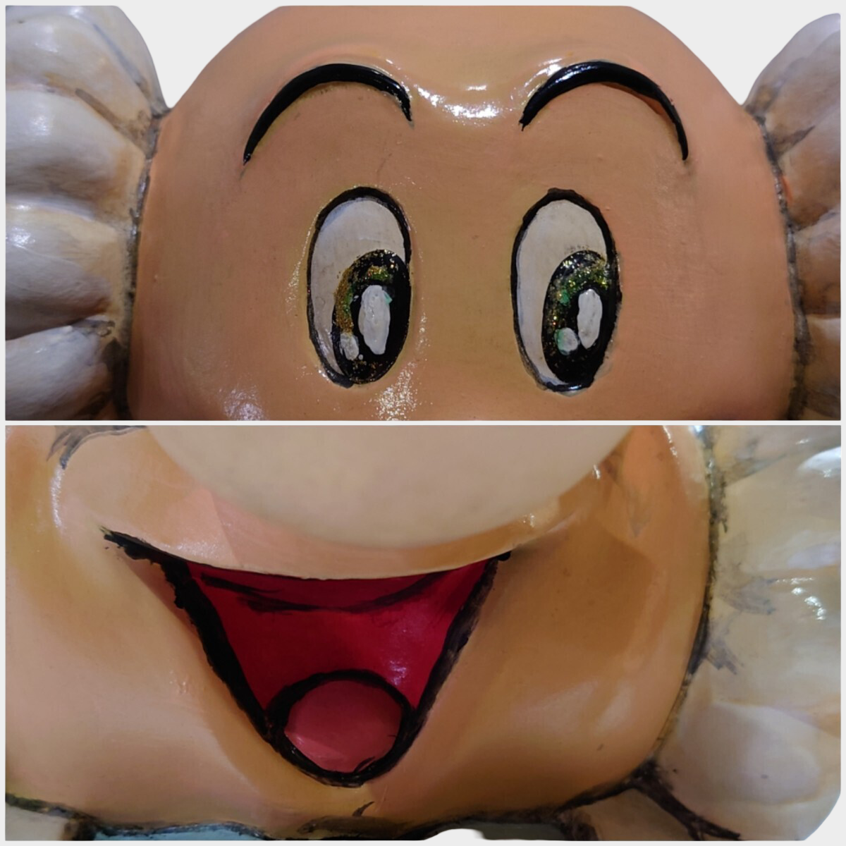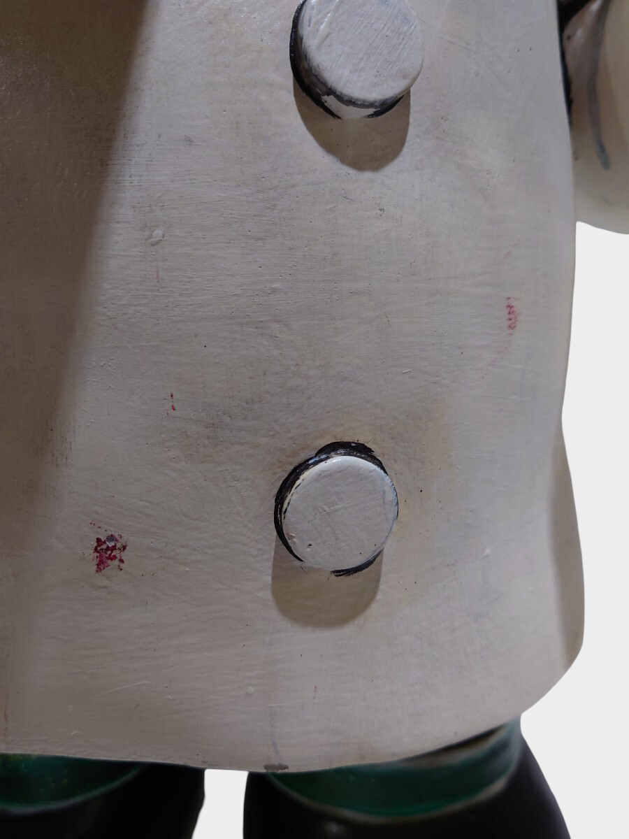 Constructed from a solid composite base, the figure carries noticeable weight and stability appropriate for floor or shelf display. The surface has been repainted, resulting in a refreshed visual presence while retaining underlying age character. Minor surface irregularities, paint texture variation, and wear patterns are consistent with long-term display life.
