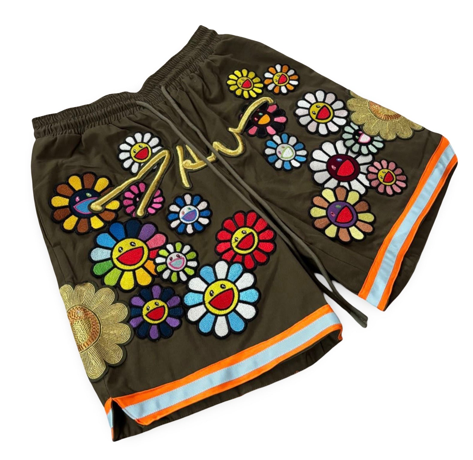 READYMADE × Takashi Murakami Flower Embroidered Basketball Shorts UVERworld TAKUYA∞ Collab Rare Army Khaki Men’s M