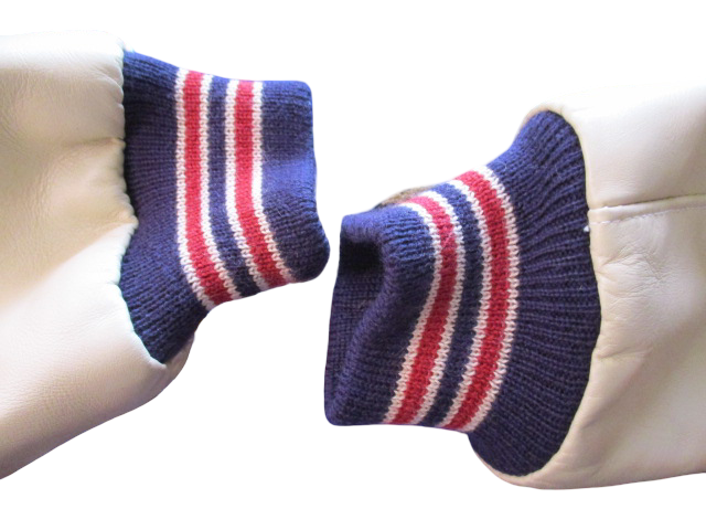 Condition is ranked B, consistent with careful ownership. Minor rib knit wear and light leather patina are present, aligning with age-appropriate preservation rather than damage. Structurally sound, embroidery intact.