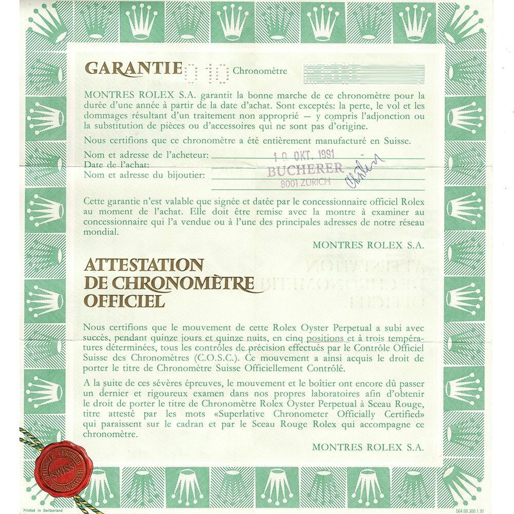 Given the passage of time, minor natural discoloration of vintage 18K yellow gold may be present, consistent with age. The piece includes the original international guarantee paper (as photographed), confirming authenticity and heritage.