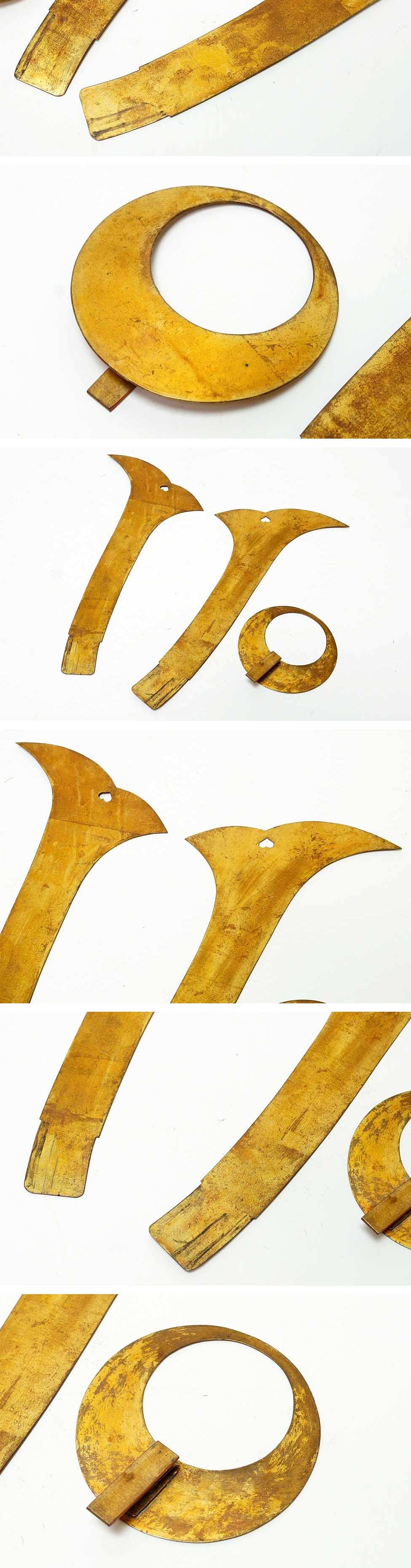 At the center stands the helmet: a riveted hoshi kabuto described with 28 plates. The “stars” (raised rivet heads) are not decoration—they are visible proof of the structural method. Plate counts and rivet architecture matter because they reveal how a helmet was engineered to curve, distribute impact, and carry weight across the head and neck. In collecting terms, hoshi kabuto are prized because they are sculpture and engineering at the same time: the helmet is the “portrait” of the armor. A strong maedate amplifies that portrait. The full crescent motif—famous across multiple warrior traditions as a sign of watchfulness and luminous authority—also becomes a pure display advantage: it is one of the most visually decisive crests in any armor room.