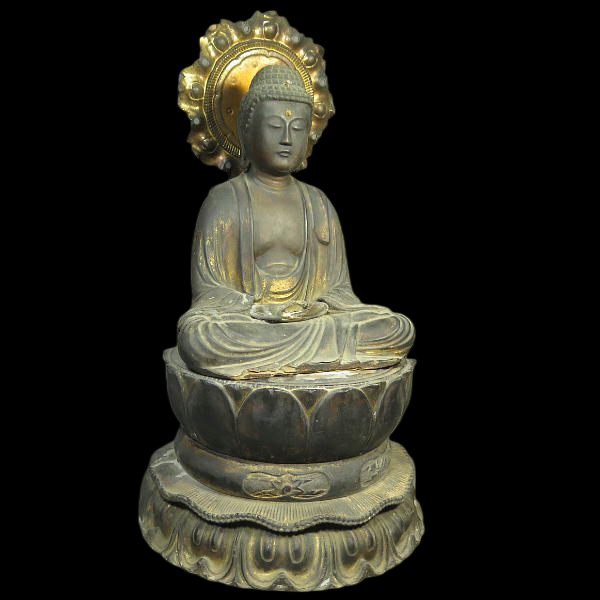 Seated Amida Nyorai images with halo and lotus base are sought for their architectural calm and altar presence. At approximately 45 cm, this piece sits in a highly usable scale for serious private collections while remaining strong enough for institutional display.