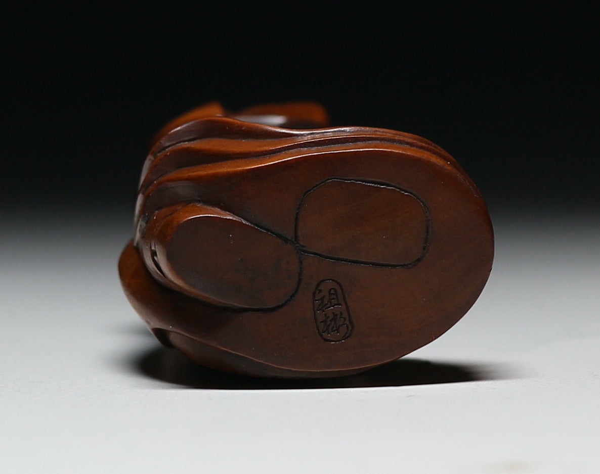 This is a transformational netsuke, where an outwardly modest figure conceals an erotic interior revealed only through rotation. This duality — public restraint, private revelation — is central to Japanese erotic material culture.
