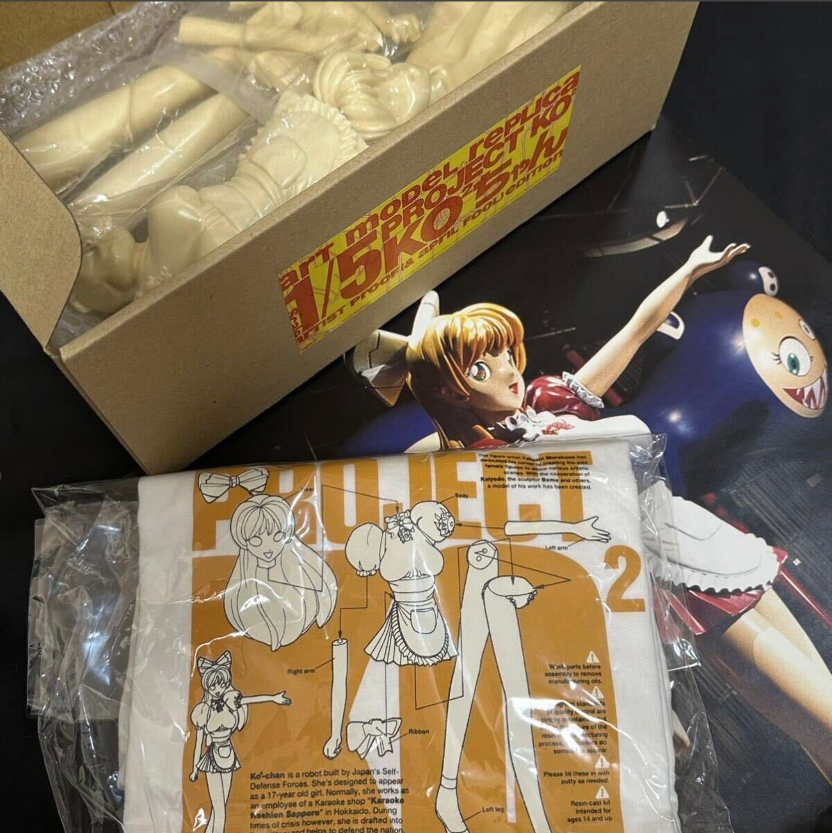 Included: Resin part set, printed T-shirt instruction blueprint, KO2 poster, original box
