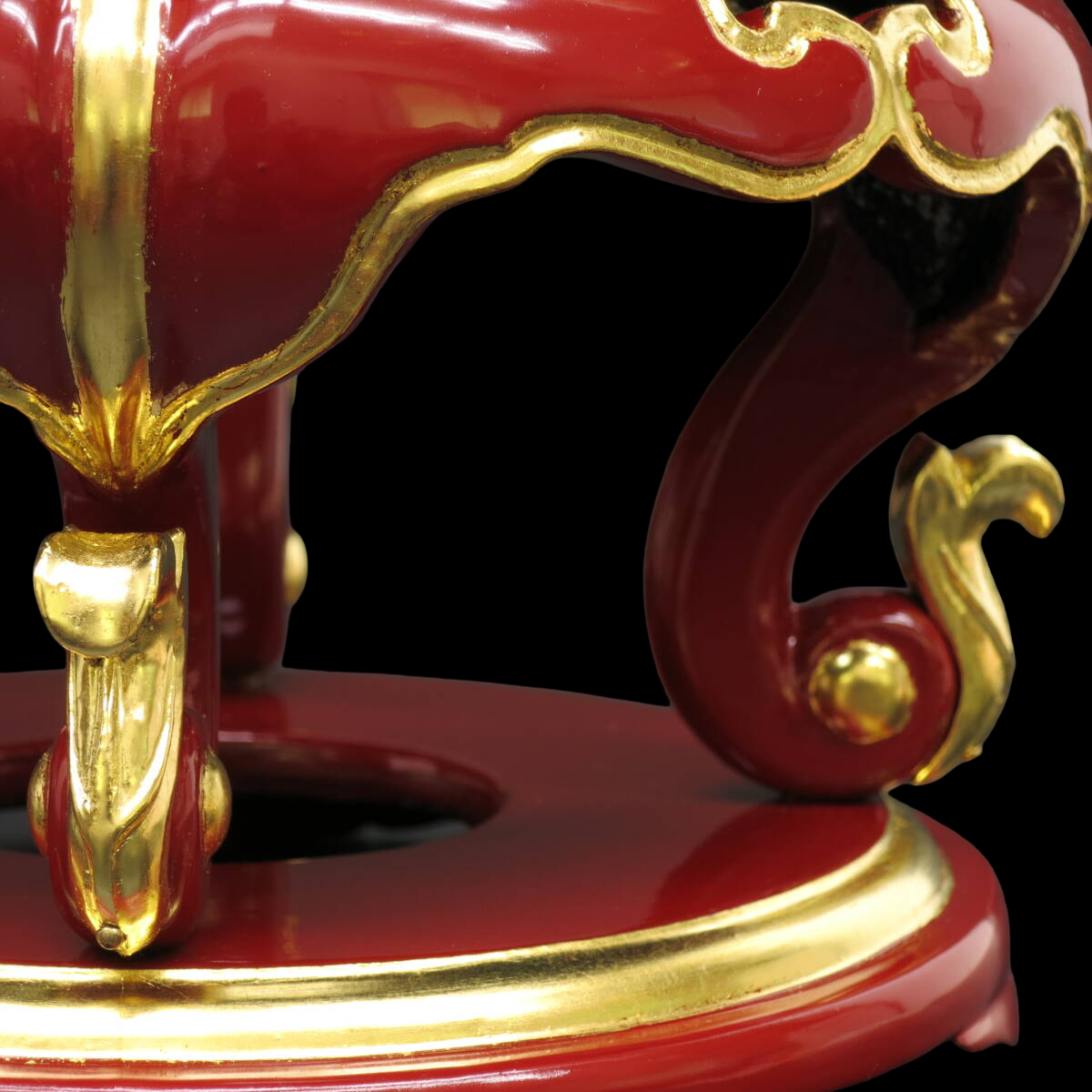 Keisudai (rindai) are used to raise an implement—such as an incense burner or offering bowl—creating a tiered rhythm that mirrors the structured order of ceremonial space. Vermilion lacquer carries an auspicious visual presence and harmonizes especially well with gold-toned altar fittings.