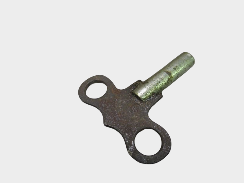 The wind-up mechanism remains intact, accompanied by its original key—an essential survival detail for mechanical toys of this scale. Surface wear, oxidation, and finish loss are consistent with age and use, and serve to underscore the object’s authenticity rather than detract from its historical value. Importantly, the structure remains sound, with aligned wheels and no evidence of catastrophic deformation.